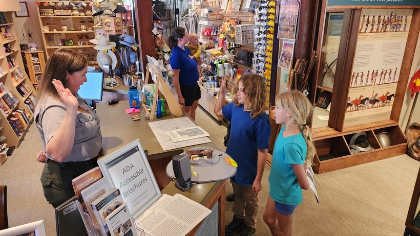 After completing their books, they received their Junior Ranger badges! Meagan and Randal looked at post cards.