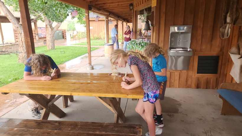 The kids got rocks and were making petroglyphs.