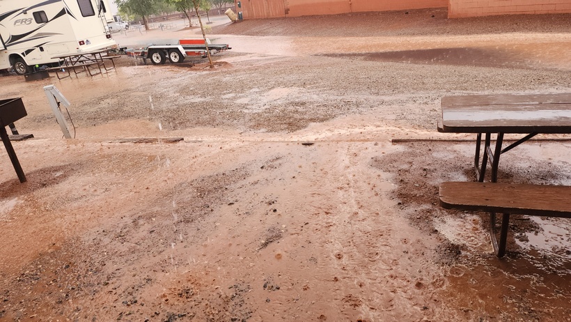 I got the rig set up in our spot and was finishing up the connections when the rain drops began to fall.