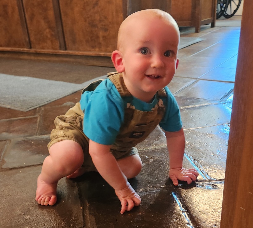Garrett enjoys an apple snack on the benches outside the visitor center.