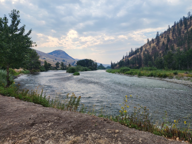 While the minions slept, I enjoyed my coffee with the view from the back of our site along the Salmon River. Really, a rough start to the day.