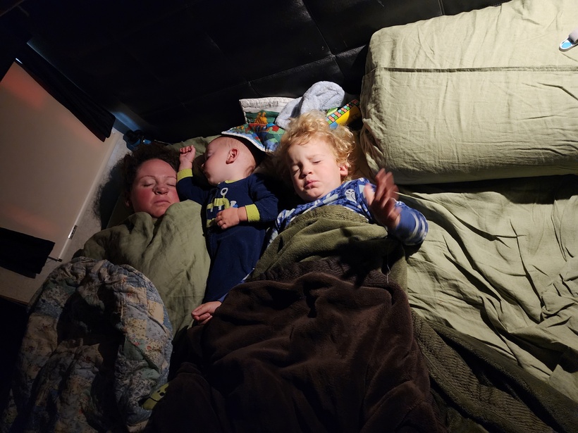 After spending the day before driving, we took a rest day. Here, at the crack of late morning, the little snuggle bugs have taken over the bed. Garrett is not happy with my photo taking!
