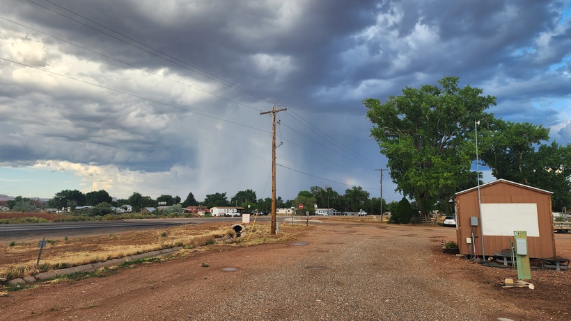 As we were finishing the set up, we were hit by a microburst. It was some of the most intense rain and wind we experienced on the trip. The RV was rocking pretty good!