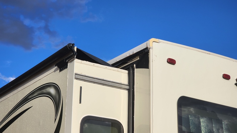 After the storm, had passed by, I went and did a check for damage. I found that one of our awning covers had been partially pulled out of it’s retention slot.