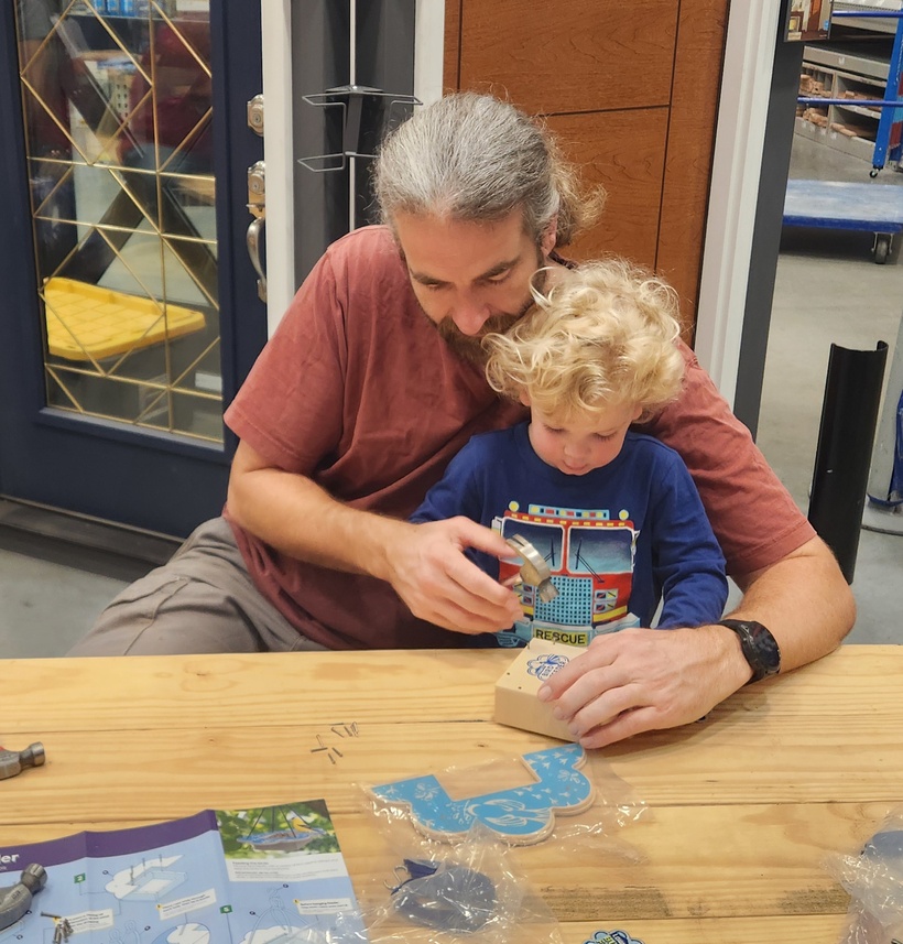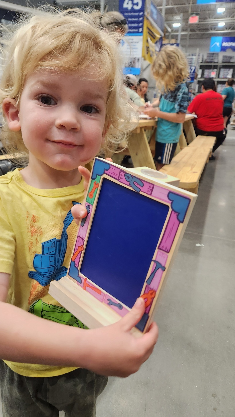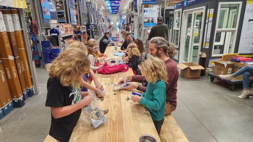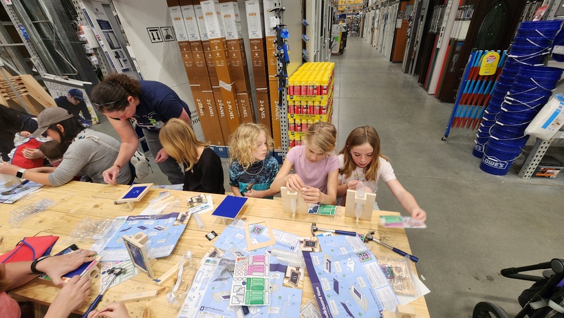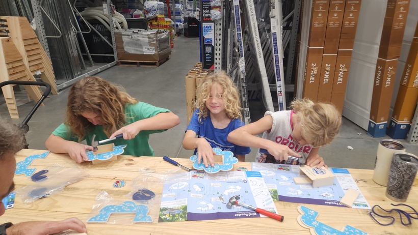 Lowe’s workshop for the kids. They are working on assembling little tool boxes.