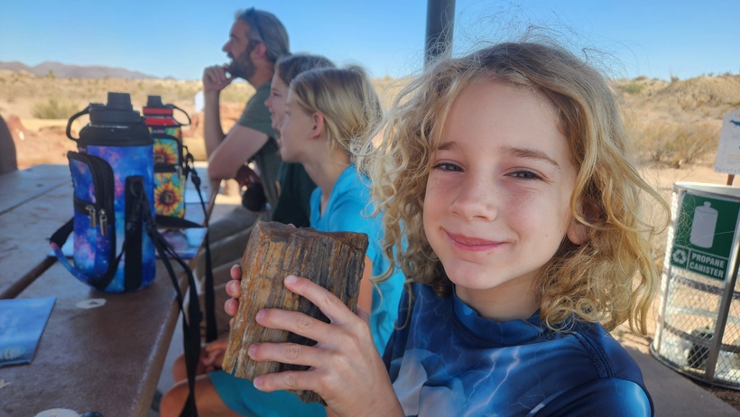 Driving North, you got a good view of the smoke from a wildfire. While I (Alan) drove on to our next destination, Holbrook, AZ and the Petrified Forest, Meagan took Jarek, Arya, and Randal on a detour to Walnut Canyon National Monument.