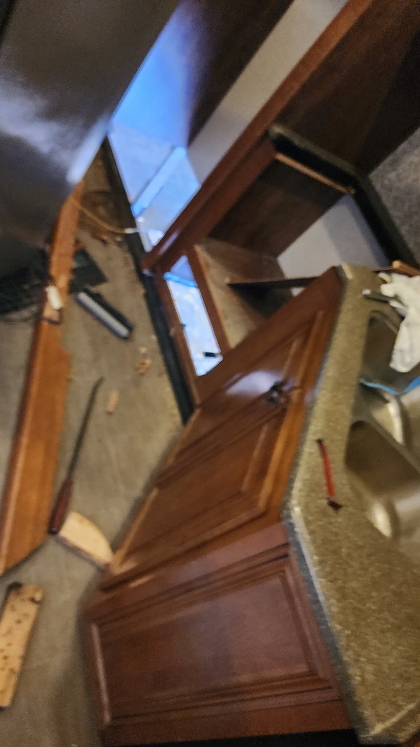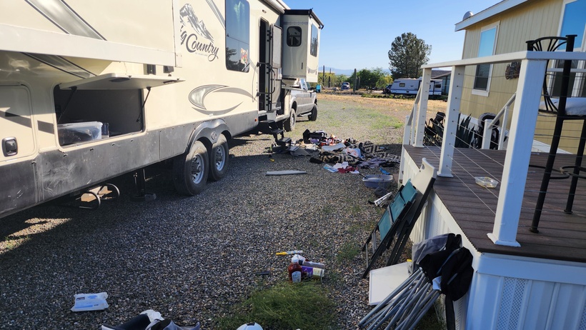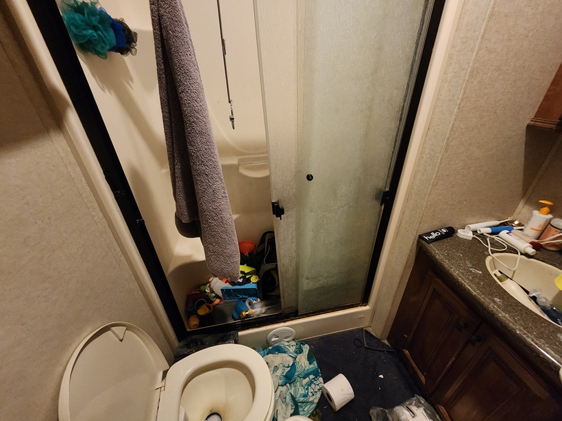 Pulling into the site and setting up, you never quite know what to expect. The bathroom did not fare so well on this trip. The doors should have been latched and locked so they did not slide around. Everything else was all jumbled about.