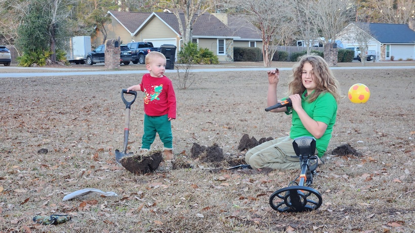 Jarek got a metal detector for Yule, and is having lots of fun exploring the yard and seeing what ‘treasures’ he can find. So far, it’s mostly been a bunch of construction trash and rusted tools from the builders and previous owners.