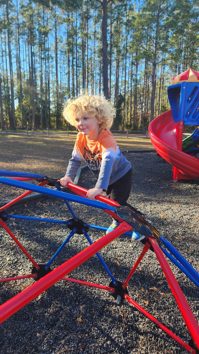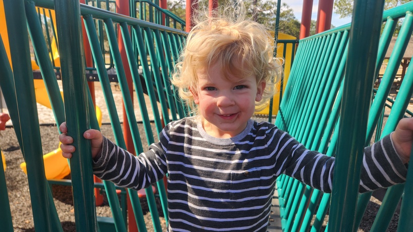 The park they went to had a stocked pond for kids to fish at, as well as a playground. Ducky was all about the climber!