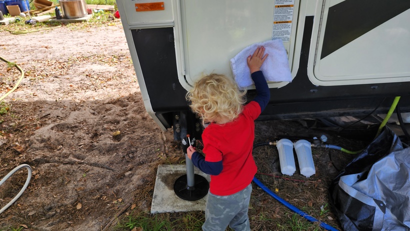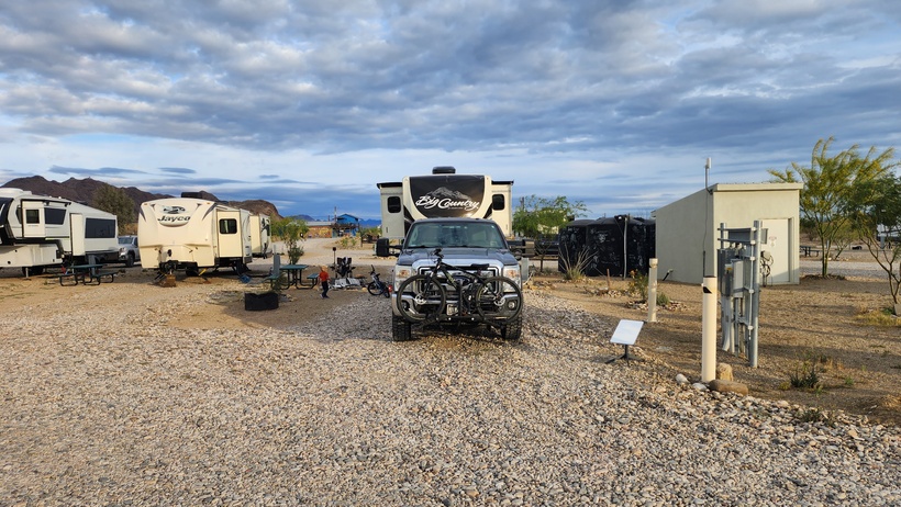 After removing the bikes, I was able to get the rig aligned much better. All of the utilities are on the driver’s side, and we generally don’t use that space for any activities. Excess space on the driver’s side is generally wasted, where space on the passenger side is what we use for our living/front porch area.
