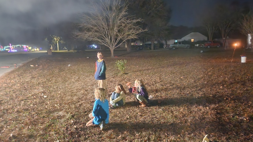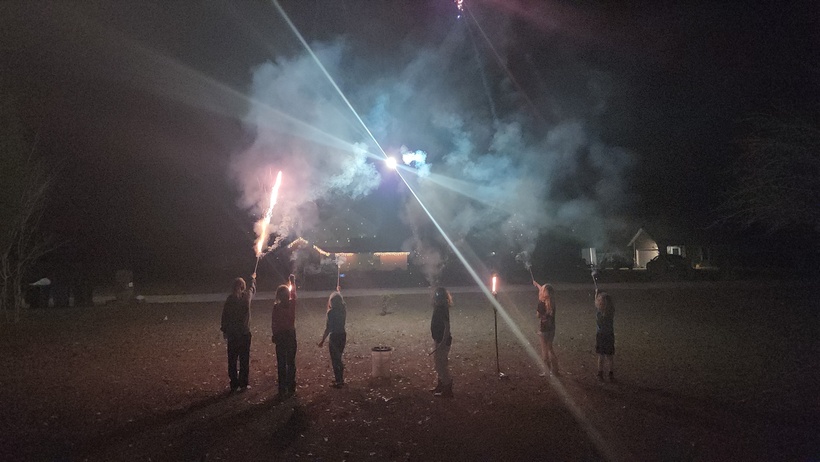 Round two of fireworks and sparklers. The kids make a firing line of Roman candles!