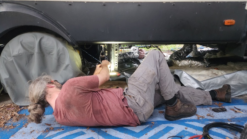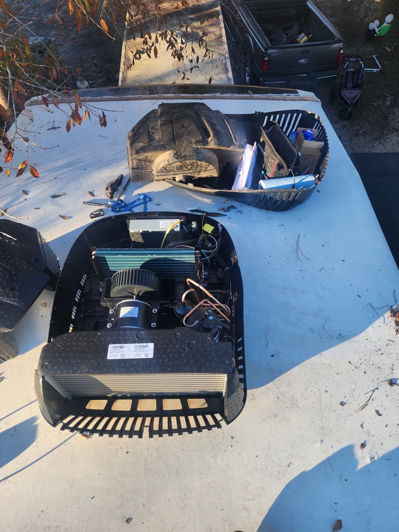 Back on the trip, our front AC failed – it would not heat/cool. I ordered a replacement unit and finally had a window to do the work when it wasn’t super cold or raining. I got help from a neighbor to hoist it up onto the roof the RV.