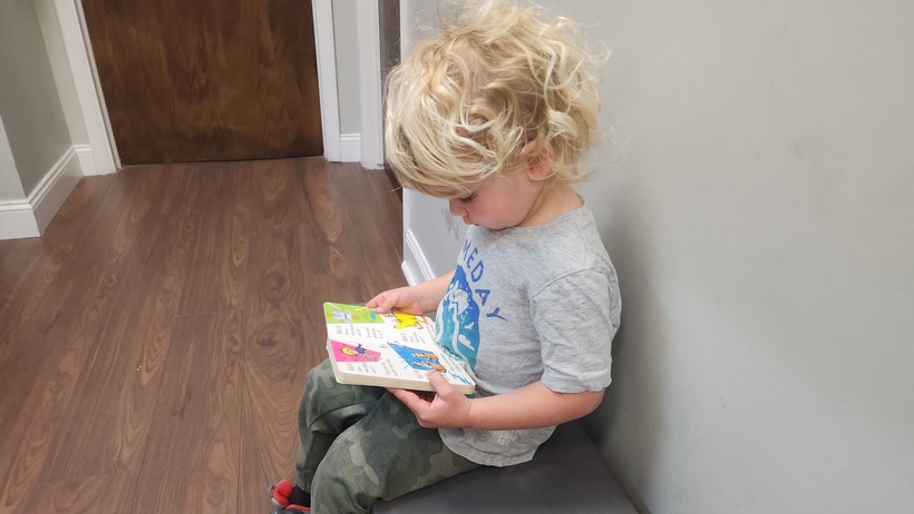 Ducky reads a book while waiting for Arya’s dance lesson to complete.