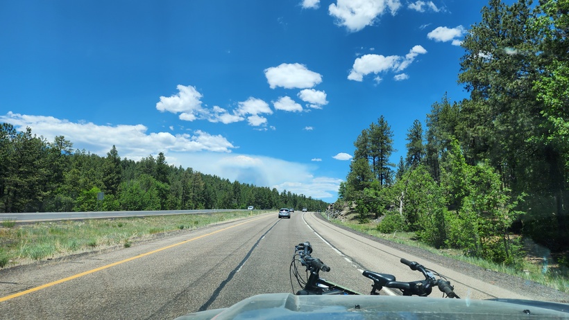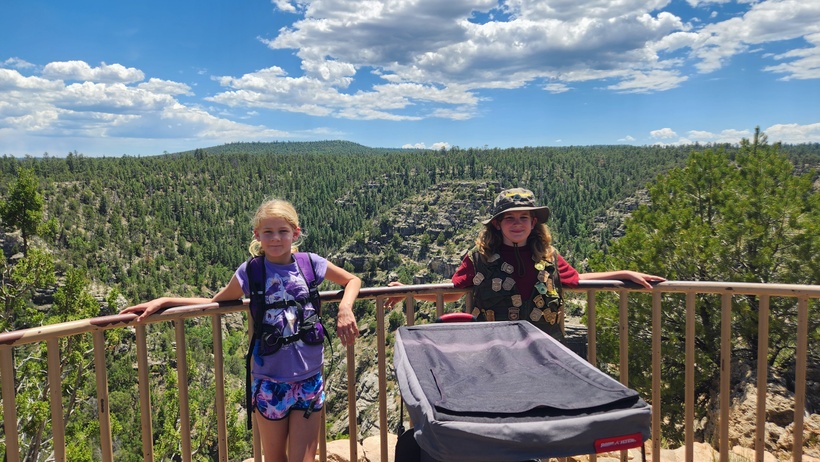 Driving North, you got a good view of the smoke from a wildfire. While I (Alan) drove on to our next destination, Holbrook, AZ and the Petrified Forest, Meagan took Jarek, Arya, and Randal on a detour to Walnut Canyon National Monument.