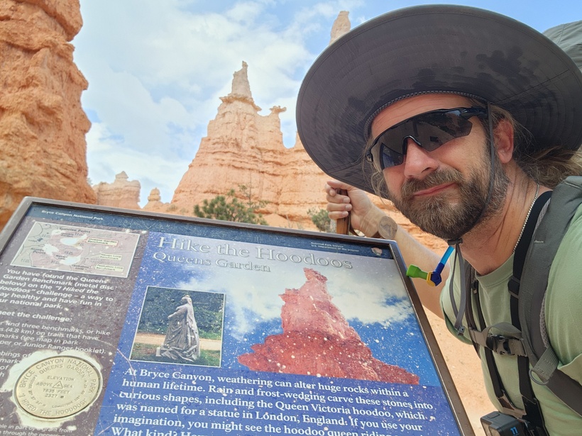 After a short hike, we made it to Mossy Cave, which is more of a grotto. We also found our first Hoodoo medallion.