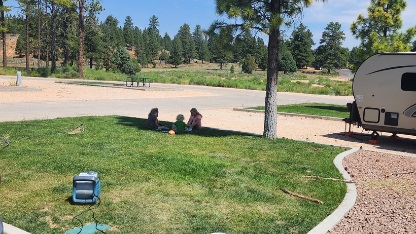 We stayed at Ruby’s Inn and Campground, just outside the park. The site we had was very large and we had our own grassy area and fire pit area. The kids loved it as they could play in the grass near the RV.