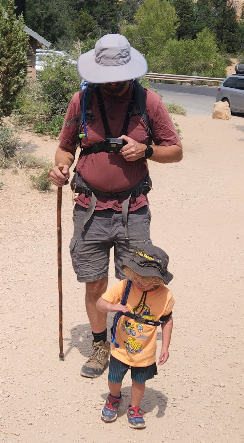I got Ducky his own Camelbak and his own Junior Ranger hat. He is very proud of them. This way he carries his own water, and if I need to put him in the pack, I can strap his water to it so it’s accessible.