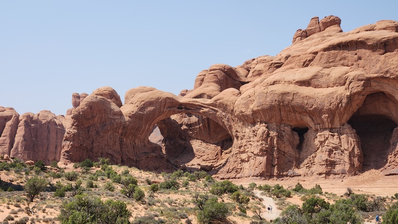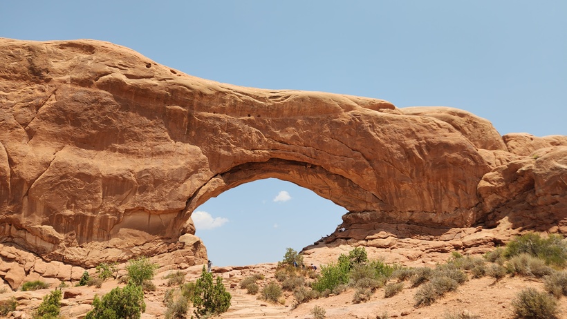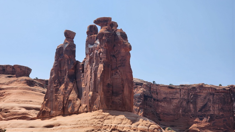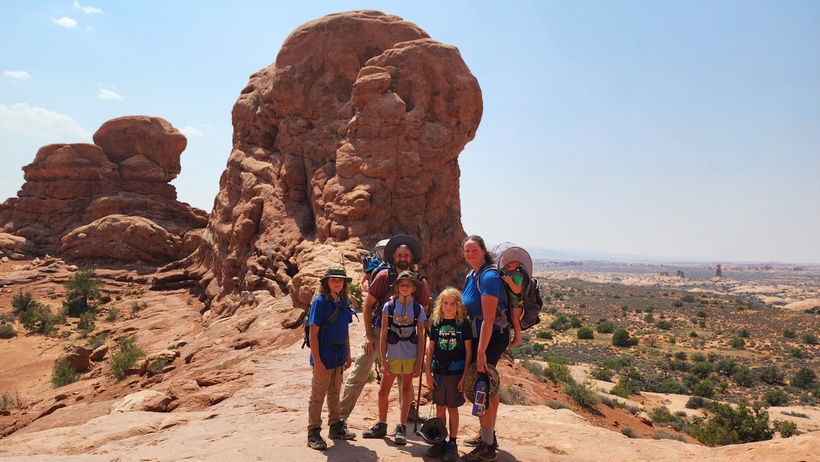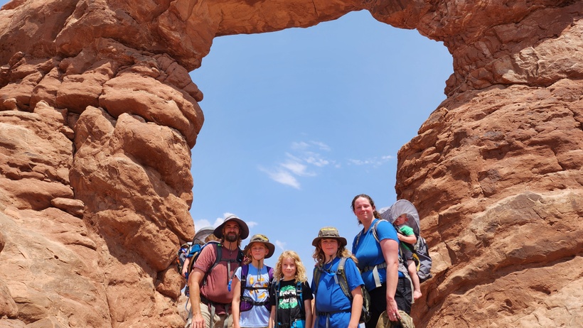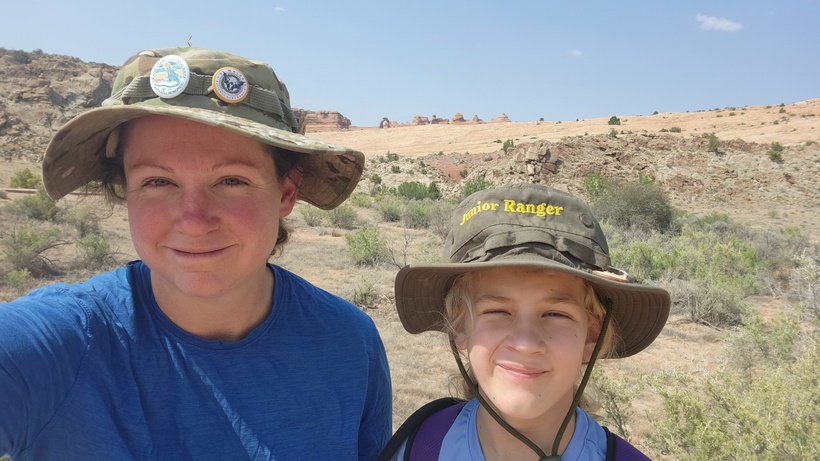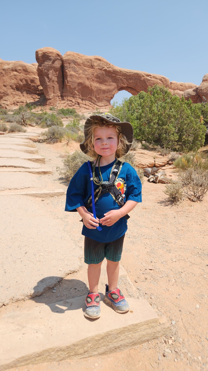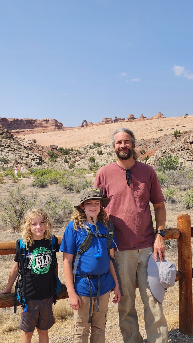 Delicate Arch in the background. Meagan and I took shifts so the babies could stay in the car in the heat.