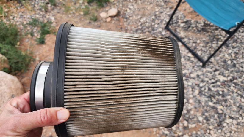 After getting to Moab, several packages arrived. Previously, I had shown you the air filter. The replacement filter was ordered – it’s not normally available on the shelf in the small towns we were staying at and replaced it. Old vs New. The old filter was installed in March before the trip began.