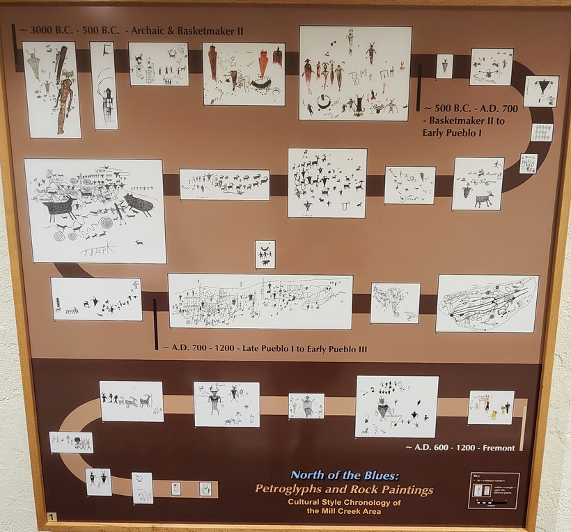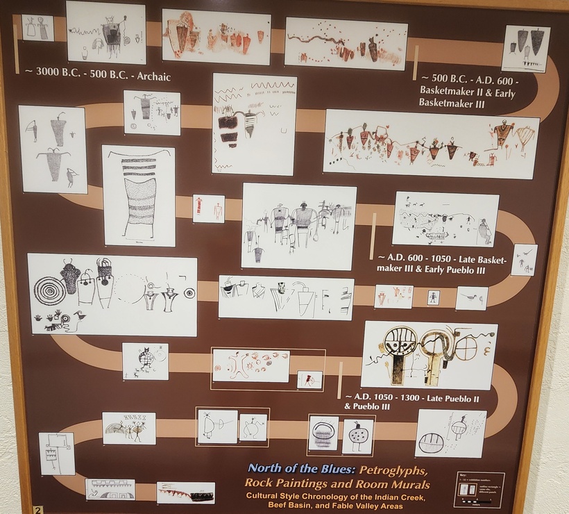 This next part was in a (somewhat) narrow hallway, so it was difficult to get photos. The whole hallway was made up of these panels showing the evolution of rock art over the years. We have not seen as well put together display of the rock art anywhere else.