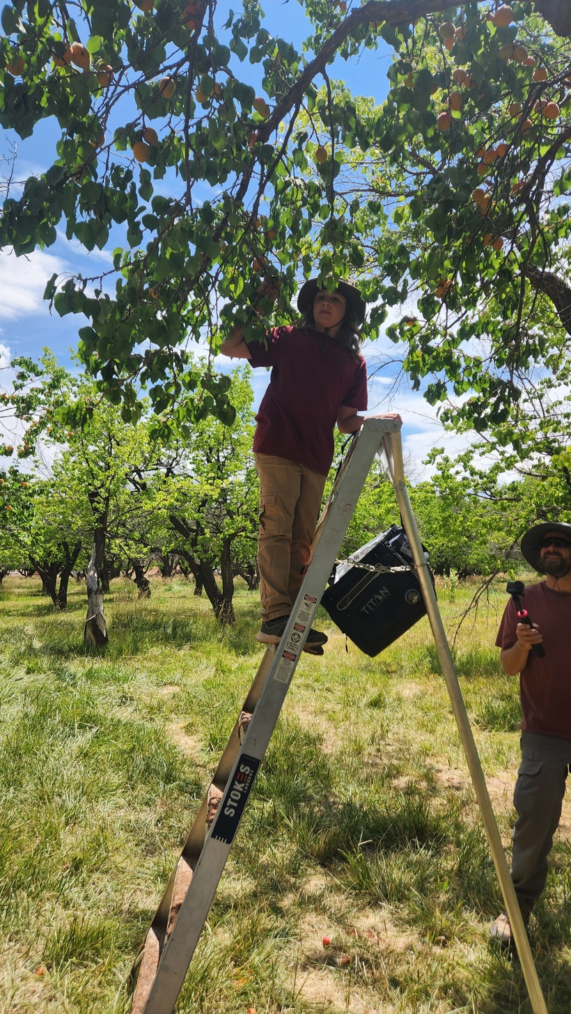 Meagan and Randal ready to go! Today we headed back to Captiol Reef and visited the historic orchards that they maintain. You can eat your fill off the trees for free. For a small fee, you are welcome to pick fruit that is ripe to take with you. When we were there, Apricots were ripe and the kids enjoyed picking 13 pounds of fruit. It was a bit of struggle to stop them – they would have picked the trees clean if we let them!