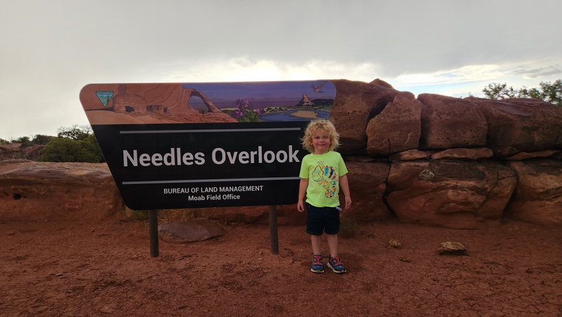 On our way back (as well as one the way too, but we passed it) we stopped at a little BLM turn off for the Needles and Anticline overlook.