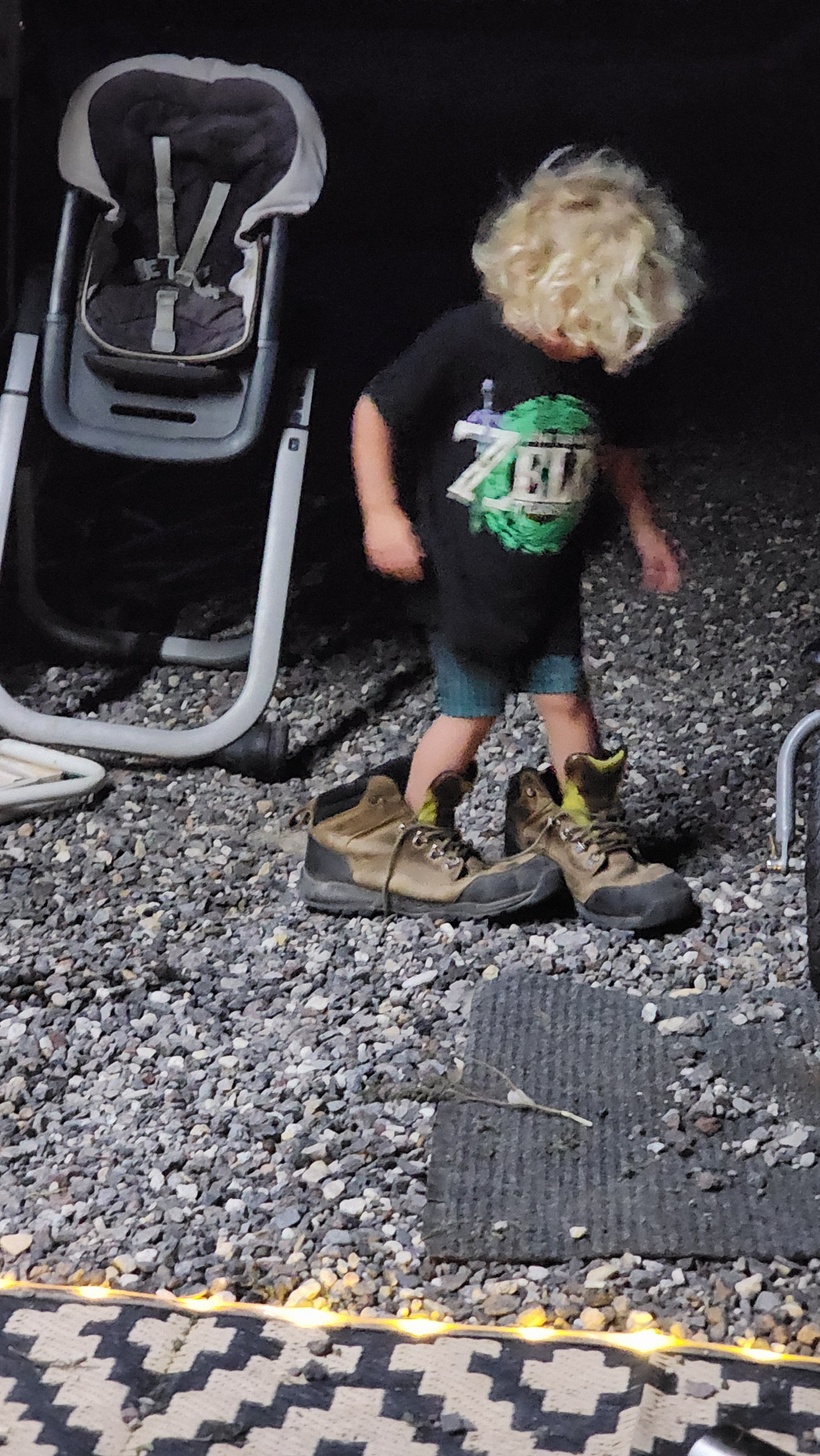 Back at the campground, Ducky asked me to take him for a walk. So, we went on a walk around the campground and he told me all about the ghosts in the campground. Ducky is apparently very into ghosts right now. But we did meet another little boy, who was camping with his family that was an only child and was very excited to share his toys and have someone to play with.