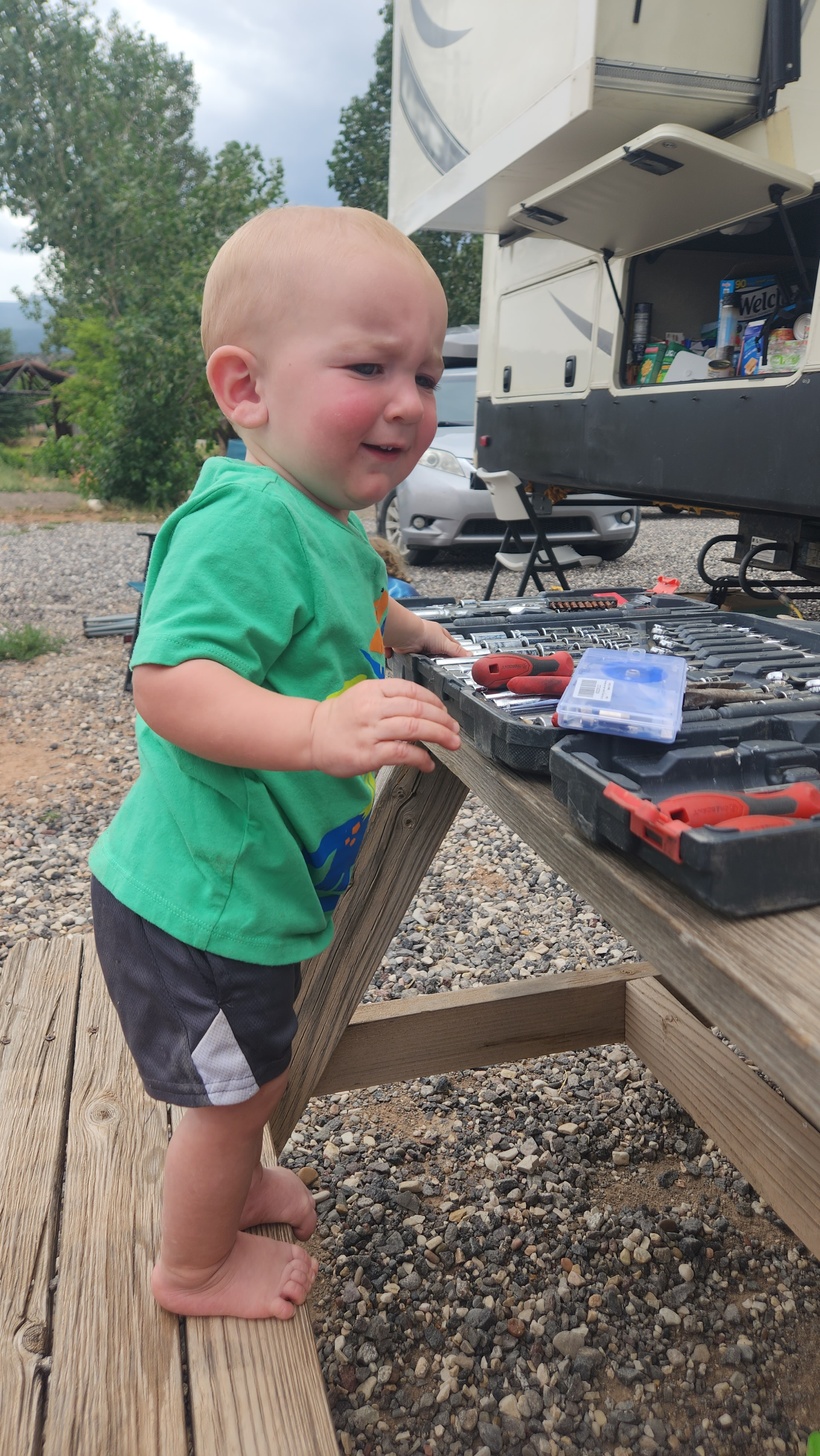As we get ready to head out from Bryce Canyon, the kids help me check the torque on the lug nuts. A few years back, we had an incident with broken lug nuts when moving the trailer. Ever since then, I’ve made it part of my habit pattern to check them each time before we move the trailer.