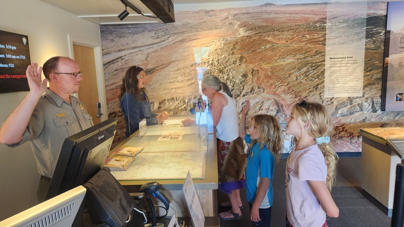 They earned their Junior Ranger badges at the Interagency Visitor Center. Then it was off to the ‘Hole in the Rock.’
