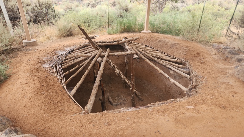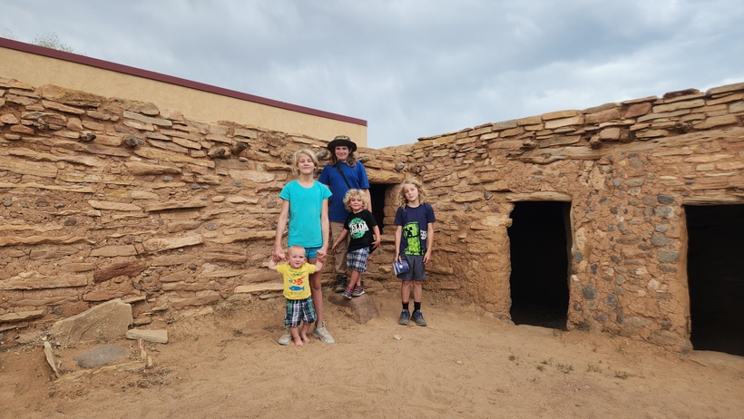 A reconstructed structure that the kids were able to explore. It was built for people much smaller than us!