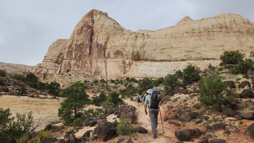 The trail started off with a decent descent down the sandstone slope into the canyon.