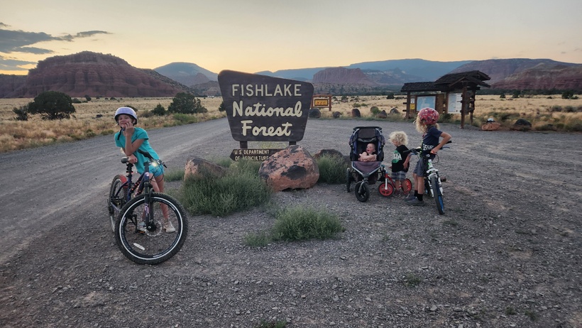 Meagan and the kids went for a walk from the campsite to the nearby entrance of Fishlake National Forest.