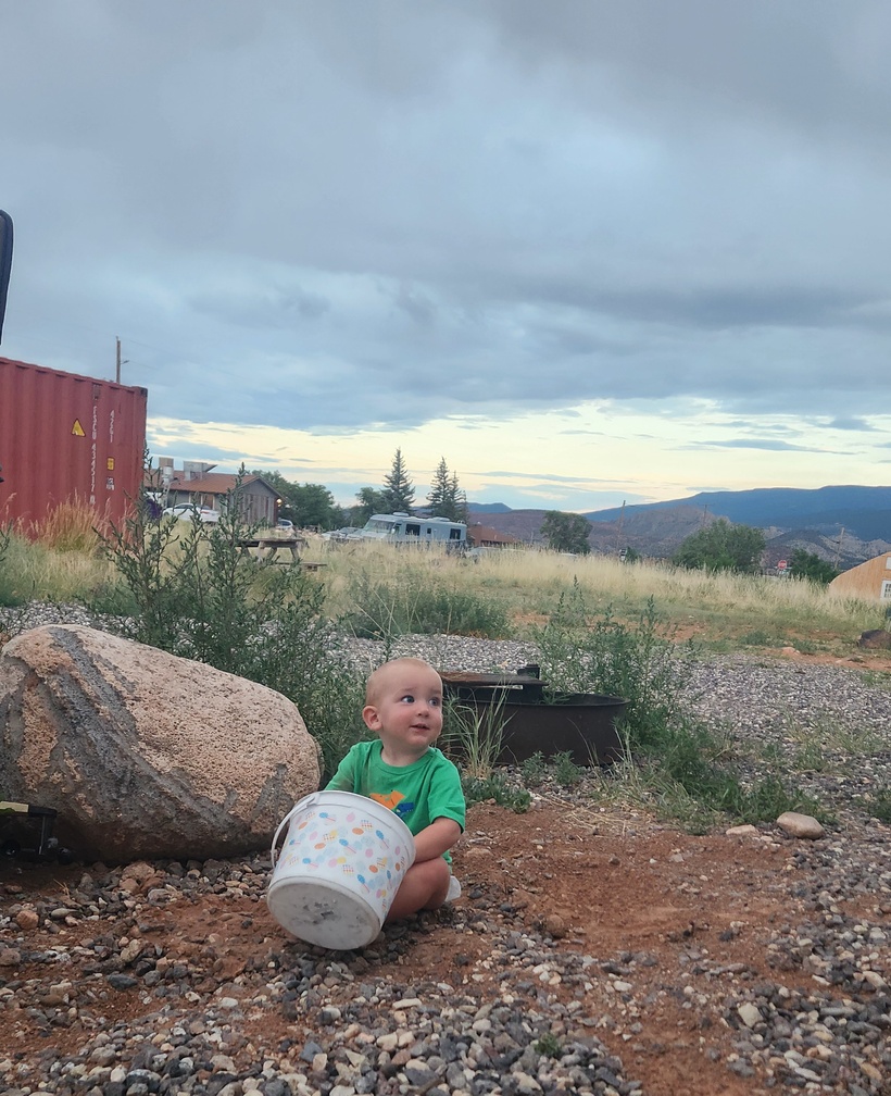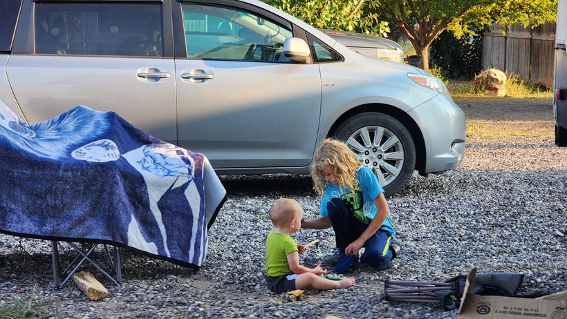 It was a little interesting getting situated, but I managed to get tucked in. The site was a bit narrower than I would have liked, but it was a quiet campground and the kids were happy to have lots of gravel to dig and play in. They are big on making roads and other vast construction projects at our sites!