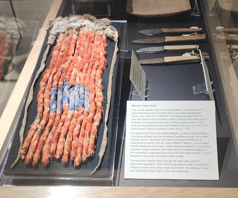 Macaw feather sash. When we visited several NPS sites, there would always be a discussion that macaw bones were found and how they were part of the trade network. Edge of the Cedars actually had an intact sash on display!