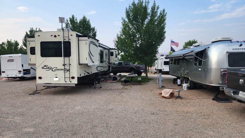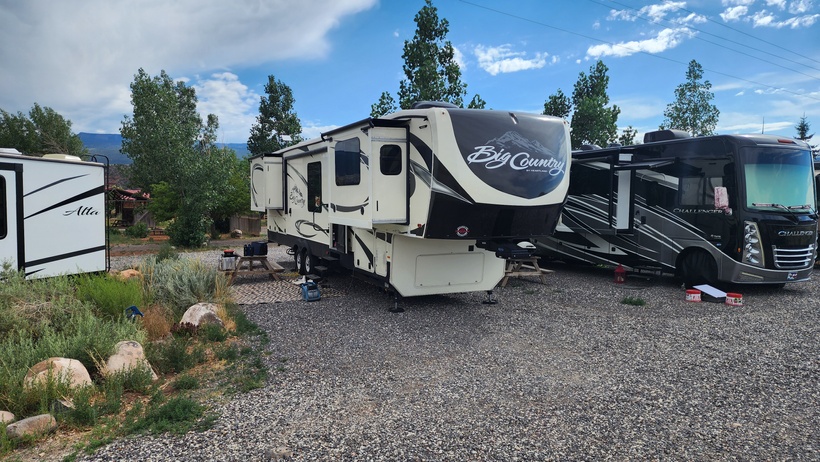 Getting into the site was a bit of an adventure. The sites were all back in and not aligned to be friendly for bigger rigs. They also had metal poles at the corners of each site so, no cheating. I ended up getting the rig backed in, although not straight in. The site was also only 1 foot longer than the RV, so that was additional fun.