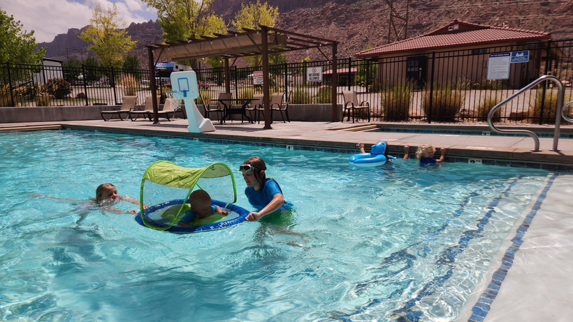 The next day, we dropped the kids off at the pool for a bit to cool off in the heat. They had a great time!