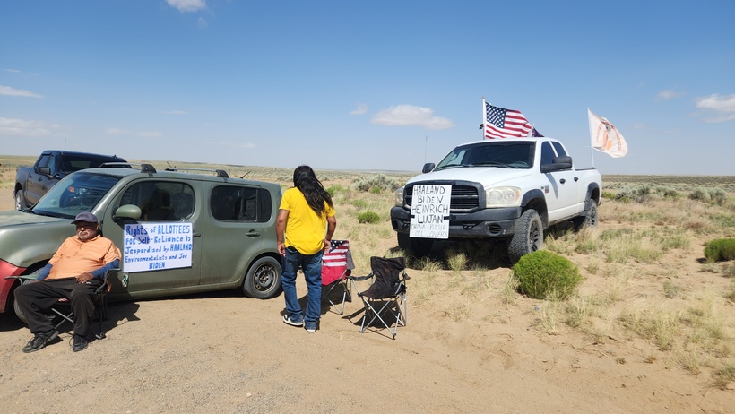 The Navajo were out blocking the road for a protest about wanting to drill for oil on their reservation.