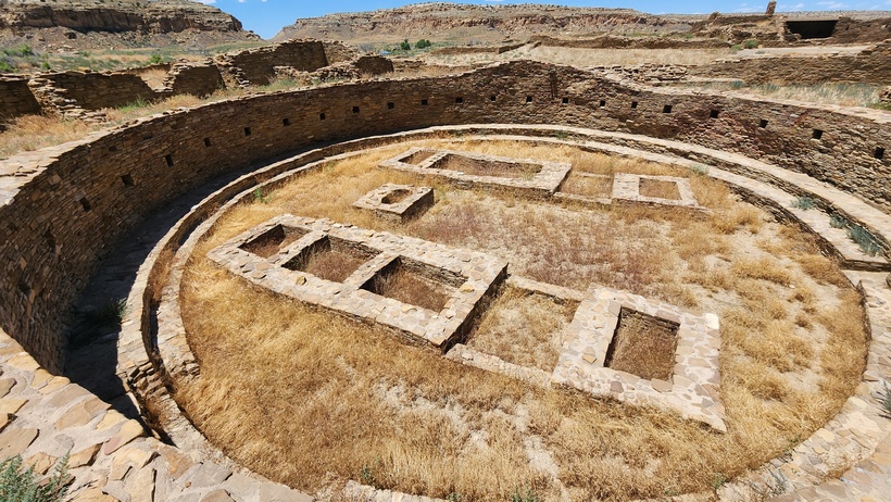One of the larger excavated kivas with structures in it similar to those seen at the Great Kiva of Aztec. One possible use for the squares was for floor drums. They would be covered with boards or other materials and people would dance/stomp on them to make the sounds.