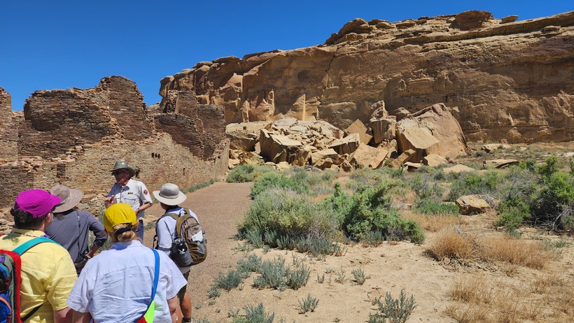 We beat feet from the visitor’s center out into the park to where a volunteer was giving a guided tour of the Pueblo Bonito ruins.