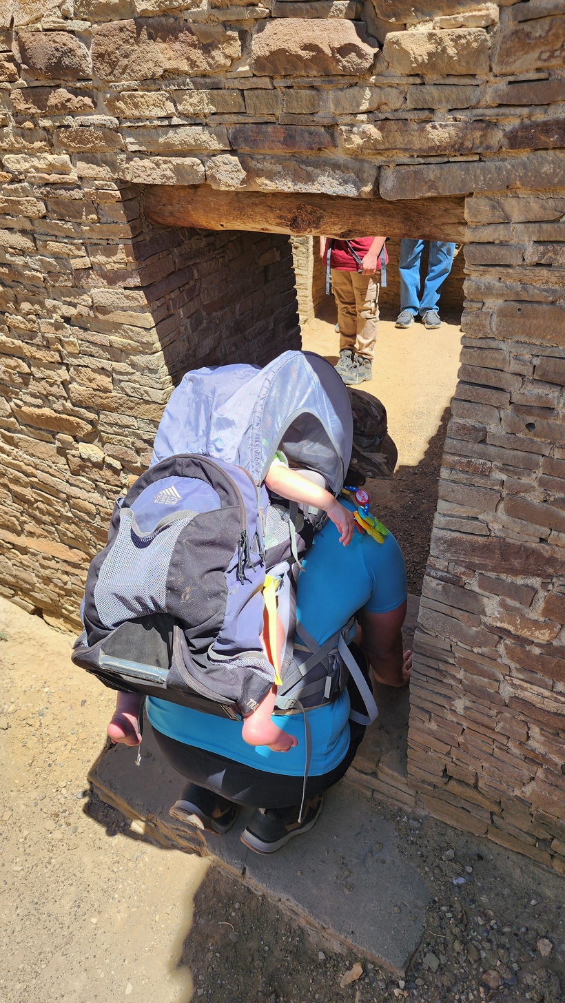 We then went on to explore the excavated ruins. Numerous small openings in the wall required some advanced crawling to get through with the packs. At one point, Alan had to take the pack off as it was so narrow and small to get the kids through.