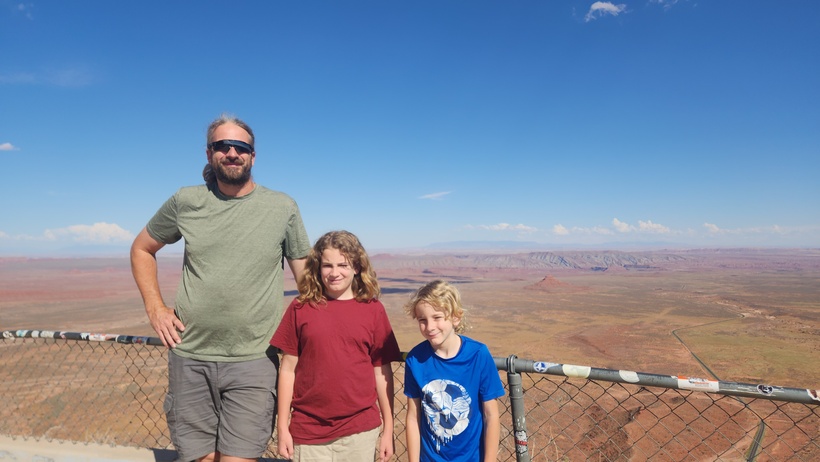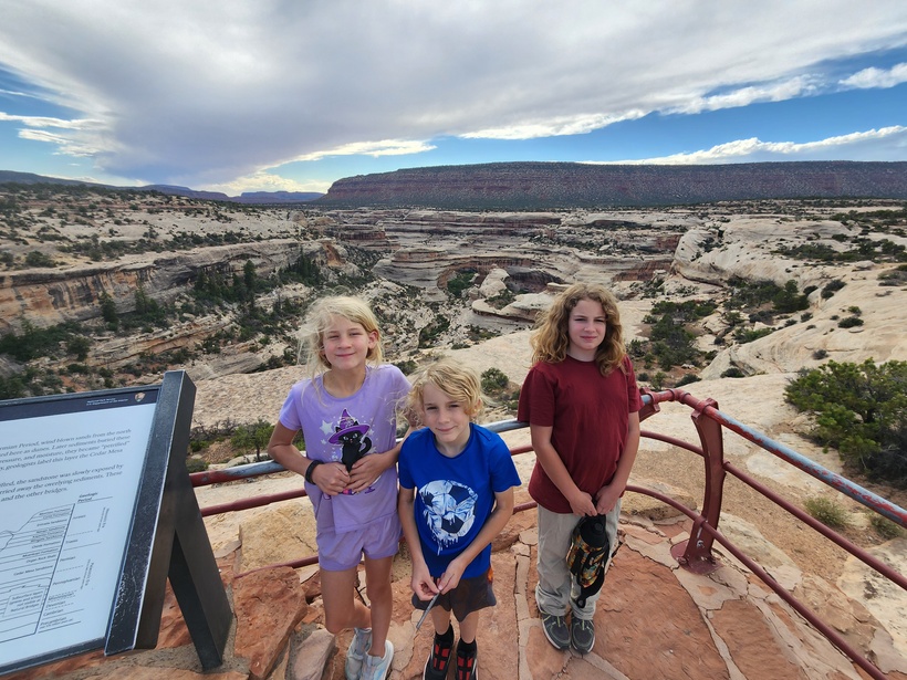 Photo op at Angel Peak Badlands Overlook of US 550. From there, Meagan and the kids went to Bluff Fort.