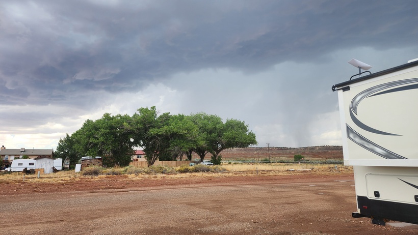 My view as I arrived at the campground. The storm that hit Bluff Fort is just over the horizon.