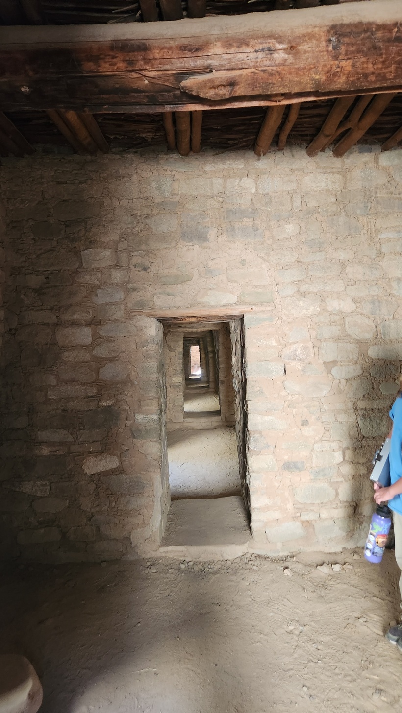 Part of the structure was available to walk through. These were the doorways used by the Puebloans to connect rooms. It was thought that these were more for air flow than for people movement, as the assignment / ownership of rooms tended to run from the front of the building straight back, and would be accessed from the roof, although occasionally they would have doors facing the plaza.