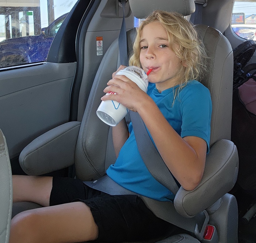 Evan got a milkshake as a Daddy Day treat on the way back home.