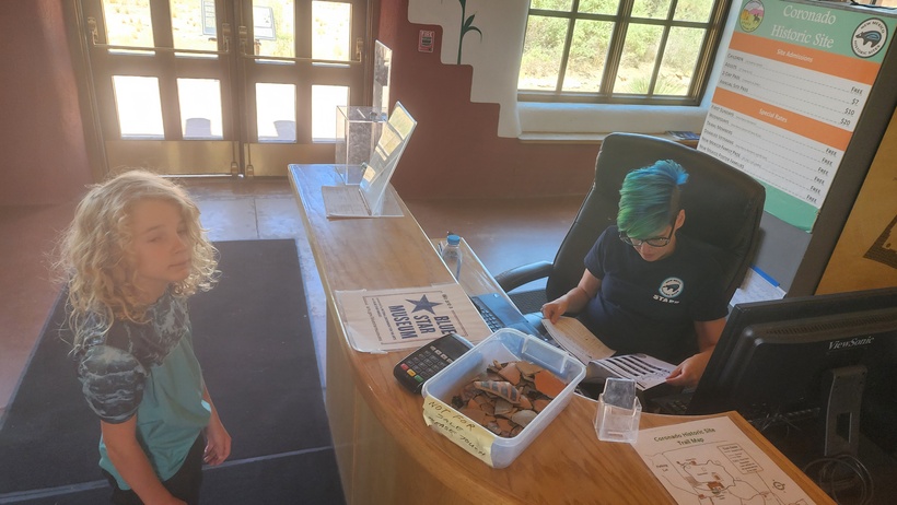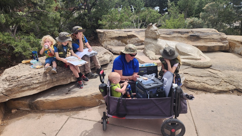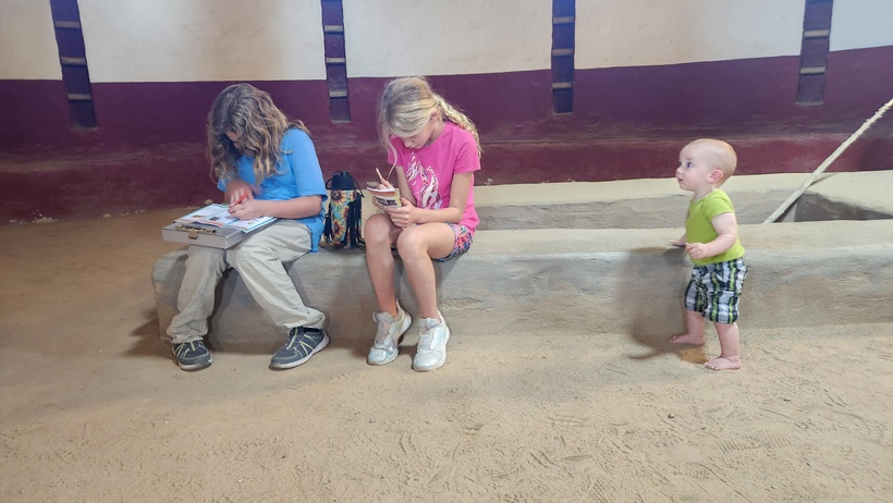 We arrived at Pecos NHP and the kids got their books. We had lunch outside while they worked on them.