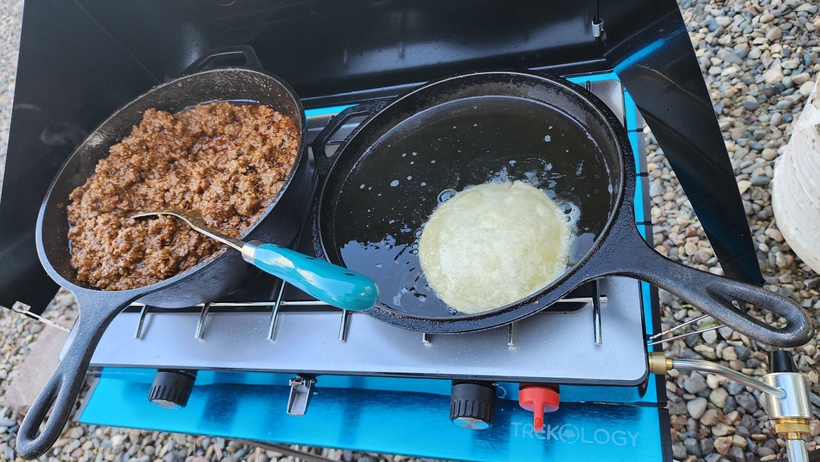 Beating the heat, I set up the stove outside to cook tacos for dinner. We’ve really leveraged the outside cooking with the RV. There is only so much heat capacity that the ACs can remove, and once you put in the heat energy from cooking dinner, it takes a long time, and only after it cools down / the Sun goes down do we recover.