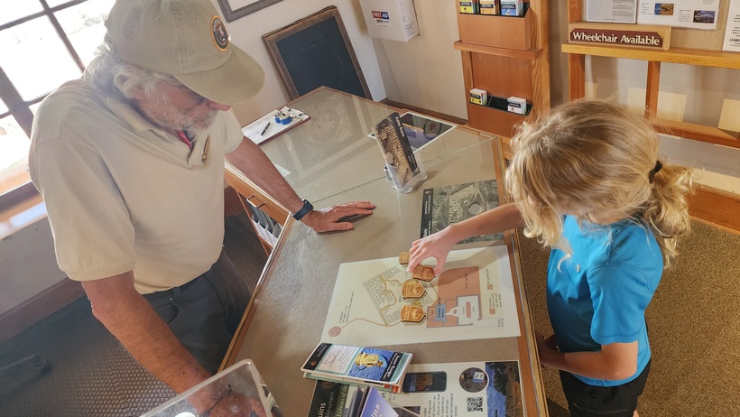 Offered a choice of style, Evan picks out his Junior Ranger badge.