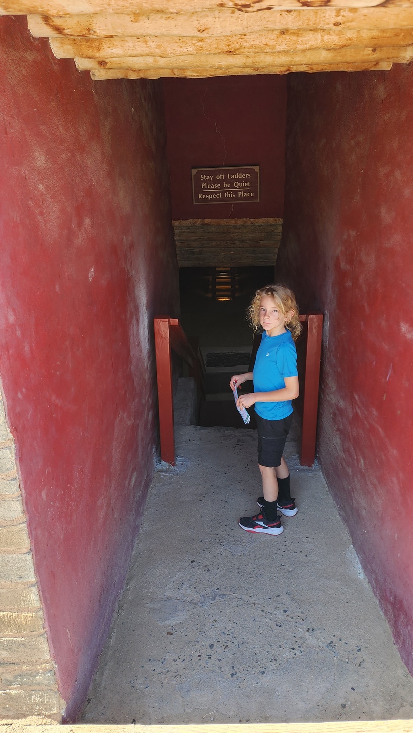 There was a large reconstructed kiva on the trail that we were able to climb down into. I helped Ducky descend the ladder.