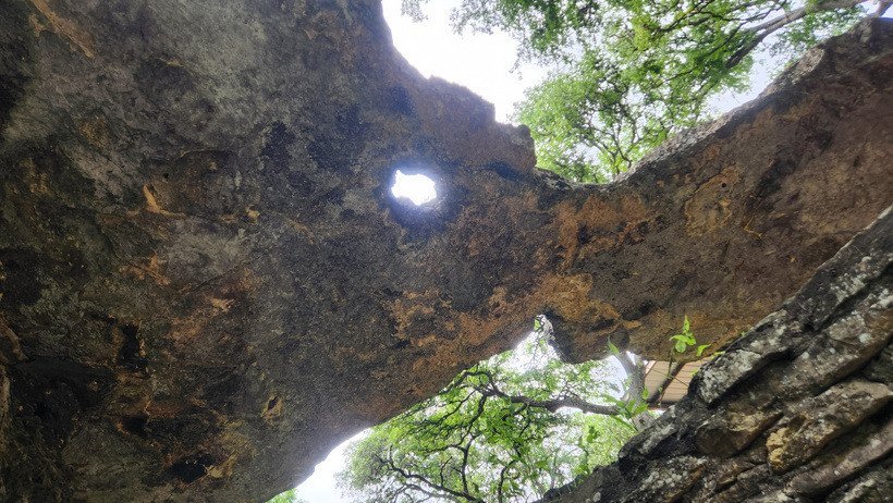 A view of the structure, showing some of the interior walls and spaces, as well as the thickness of the walls.