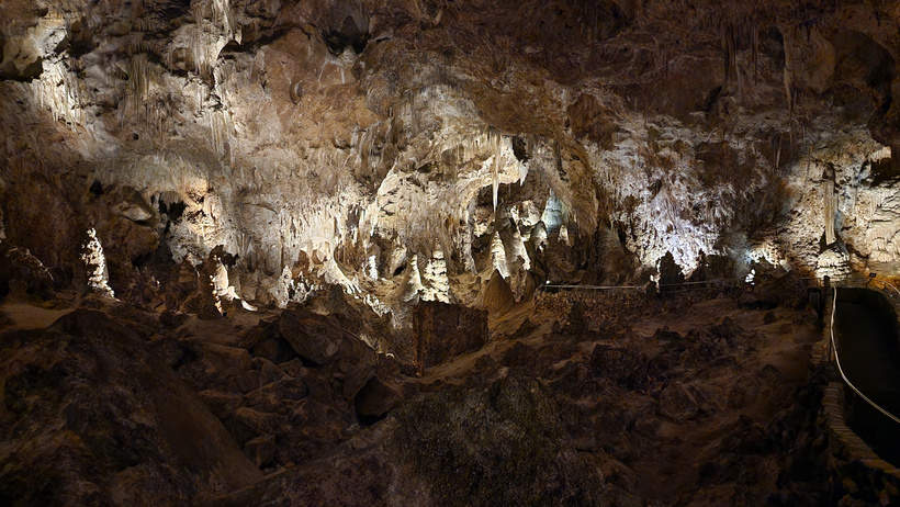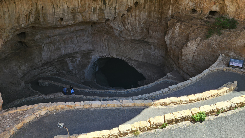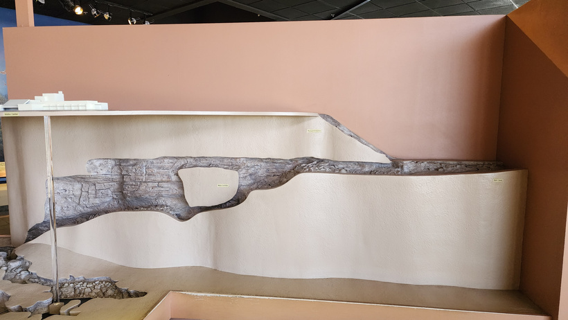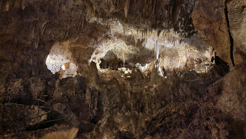 A cut away view of the Carlsbad Caverns, showing the natural entrance. The image below is the lower portion of the cave.